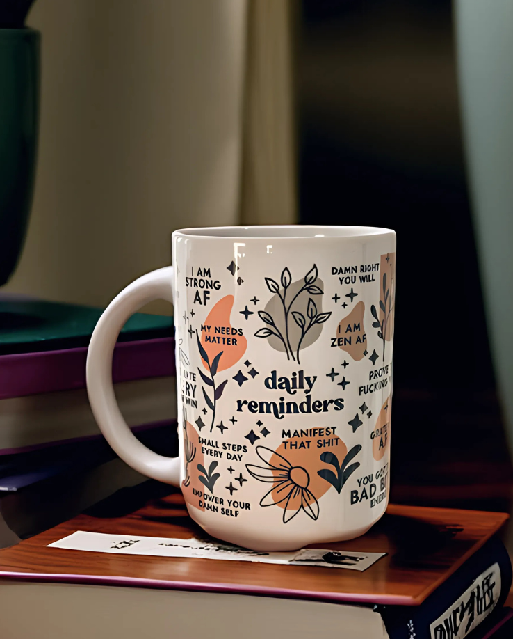Daily Affirmation Mug 15oz – Mental Health Gift for Her, Motivational Ceramic Cup