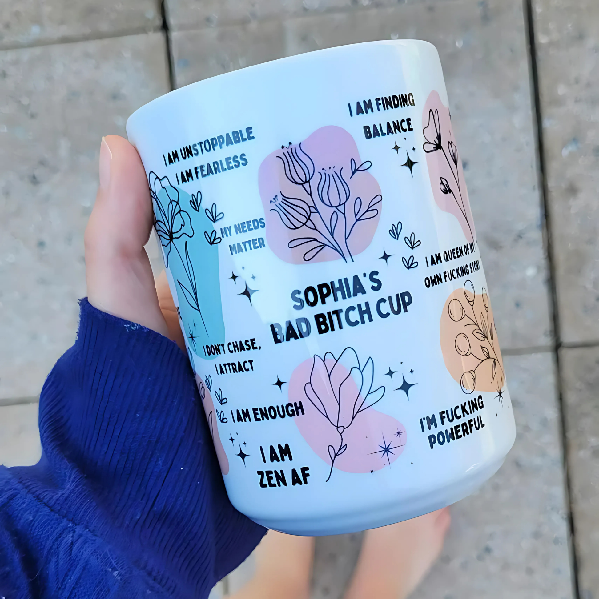 💪 Start your day like the bad btch you are. This Personalized Affirmation Mug is packed with unapologetic, empowering reminders like “I am unstoppable”, “I’m fcking powerful”, and “I speak my own truth.” Designed to boost your confidence and mindset with every sip, it’s more than a cup — it’s a daily ritual in self-worth and mental clarity.